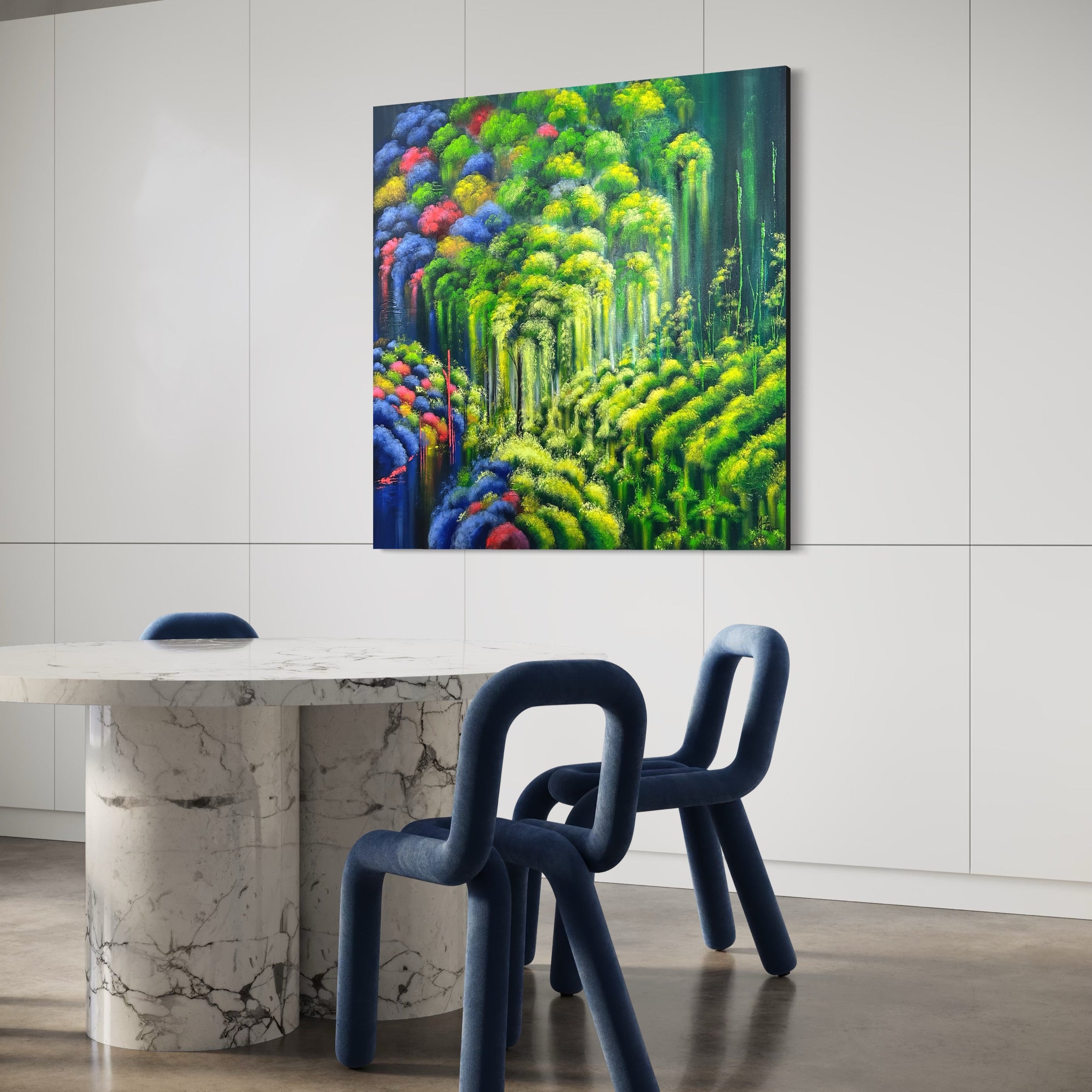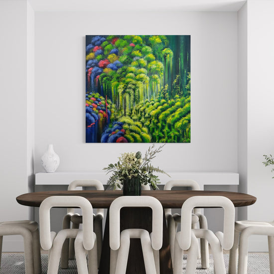 The Garden of Rebus was born from the depths of my soul, serving as a metaphor for life itself, with both blessings and challenges. The interplay of vibrant colors, texture, movement, and light conveys hope, resilience, and transformation in a reality free from external distractions.